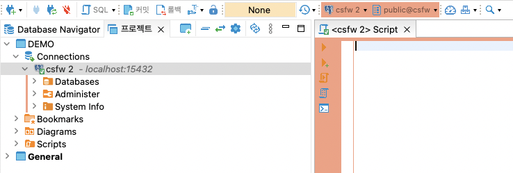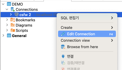 - 등록된 DB 접속정보를 선택하고 오른쪽 클릭