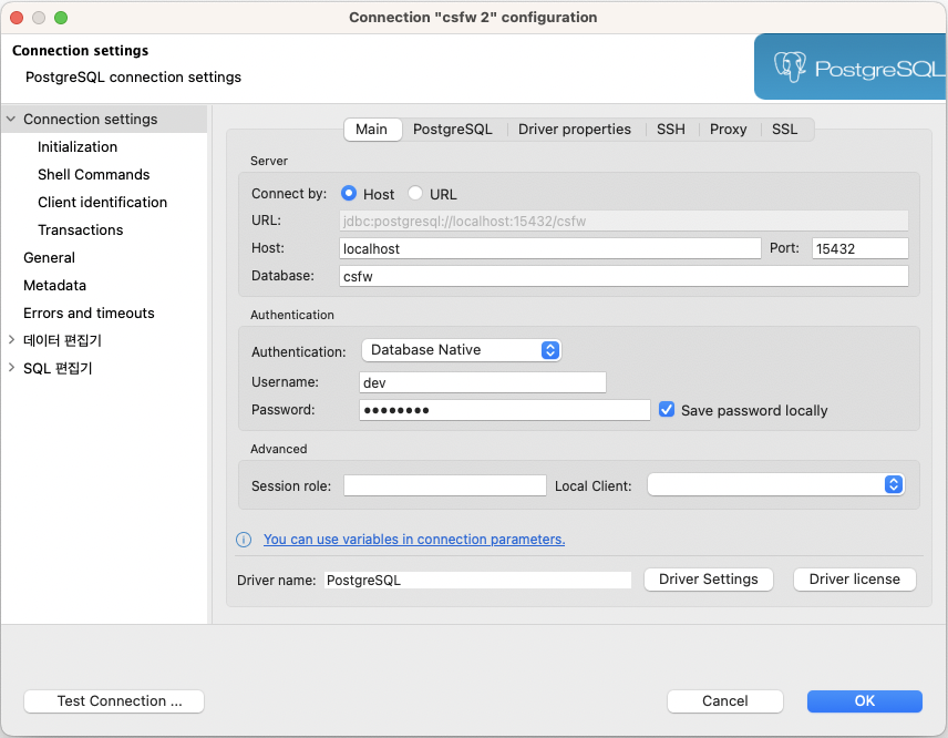 Connection type정보를Production으로 변경Production으로 설정시에DBeaver에서 자동으로Manual Commit모드로 변경