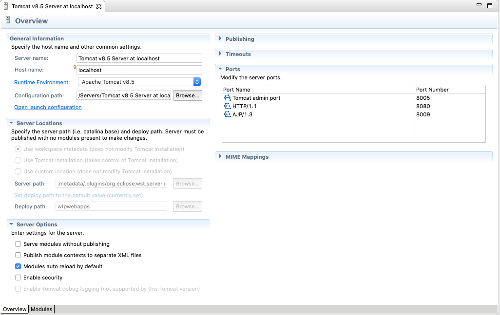 서버의 설정 정보에서 다음의 정보를 변경한다.