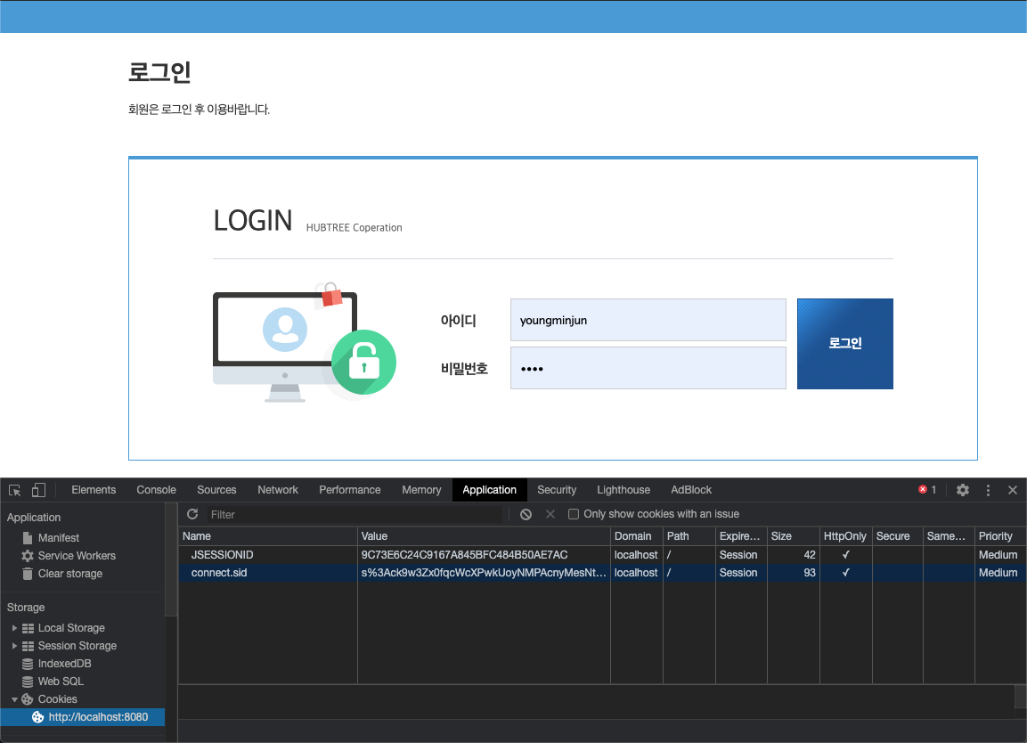 Session에 정보를 저장하는 로그인을 하고 다른쪽에서 동일한 로그인을 할 경우에는 양쪽 모두JSESSIONID값의 변경으로 인해서 모두 연결이 해지됨