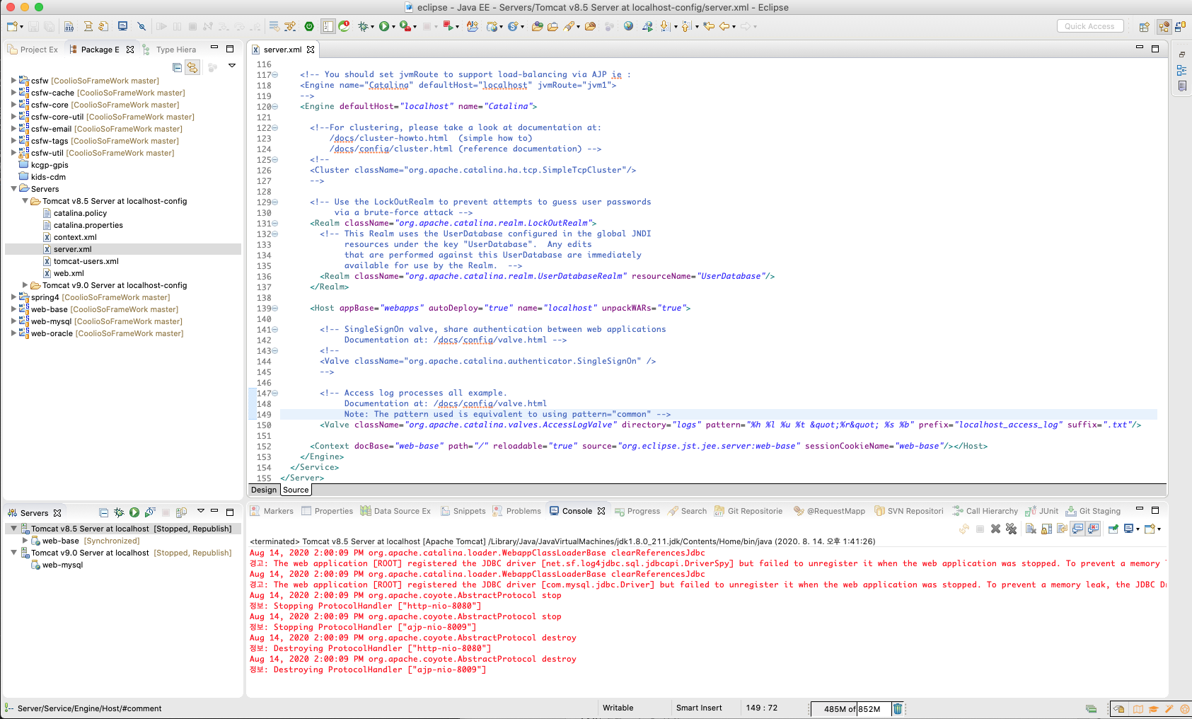 Eclipse의 Servers > Tomcat x.x config > server.xml